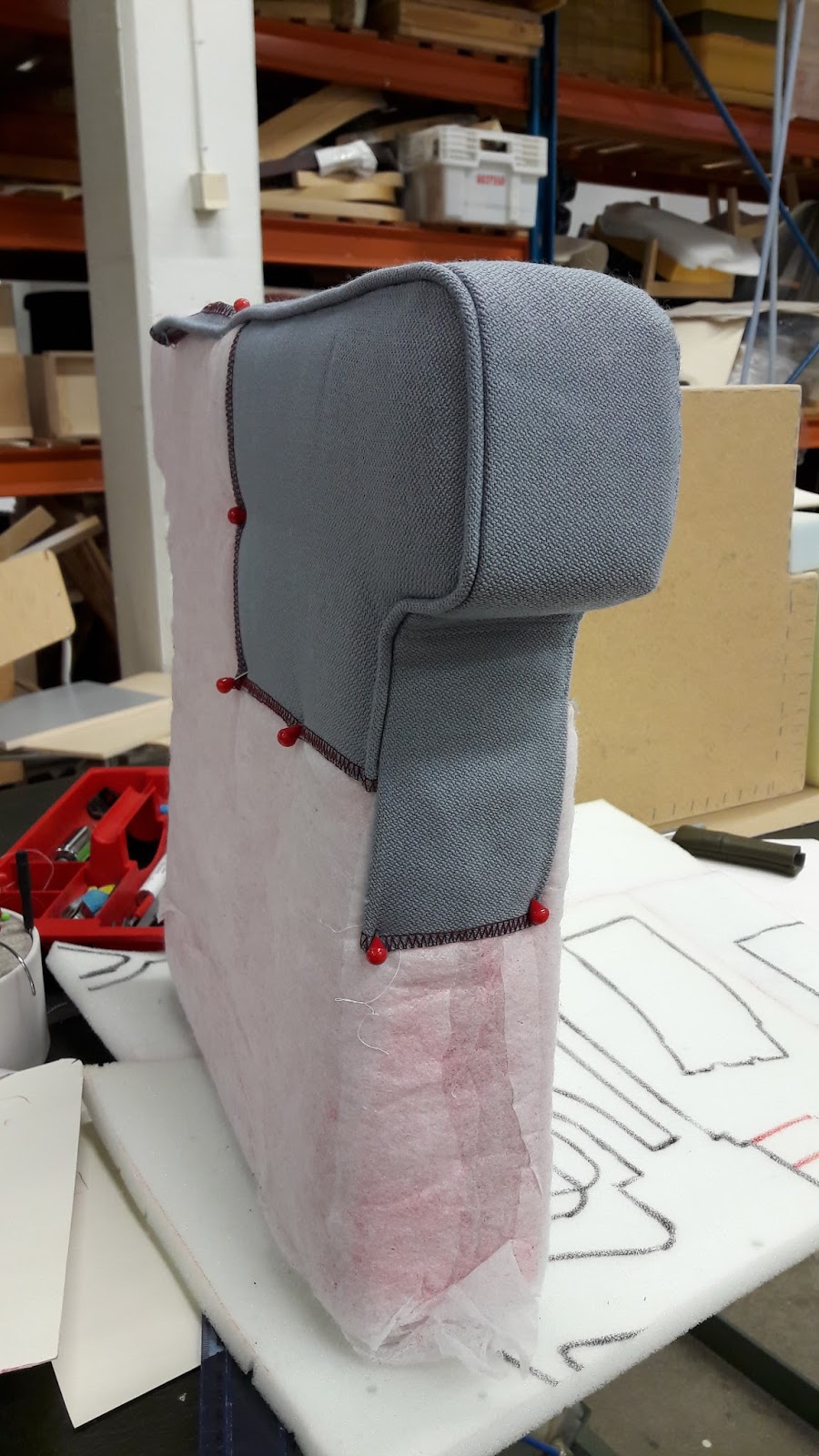 Irtopäällinen kiinnitettiin tuolin sisäreunoihin velcroilla, eli lisälipat piti suunnitella päälliseen myöskin. Ja lopussa vielä pari kuvaa kangasversiosta kun mittasuhteita mallailtiin vielä (Jani ja sen peukalo incl).